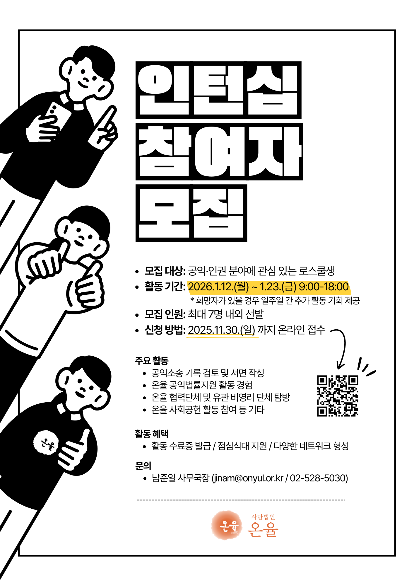 [2025년 동계 국내 실무수습-15] 사단법인 온율(~11/30 일)