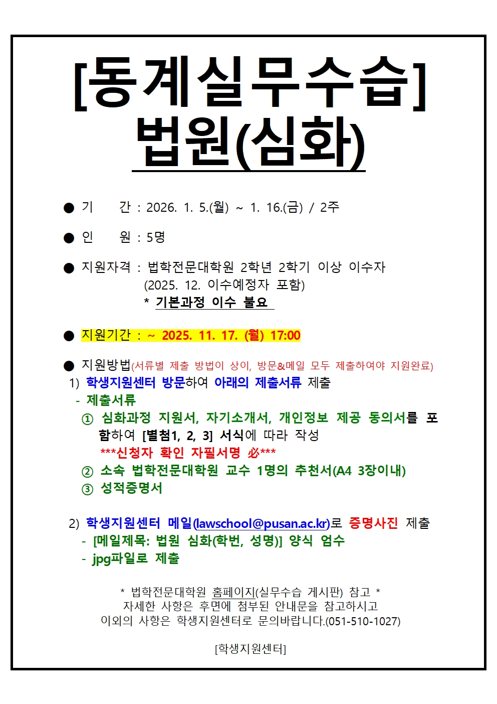 [2025년 동계 국내 실무수습-17] 법원(심화)(~11/17 월 17:00)