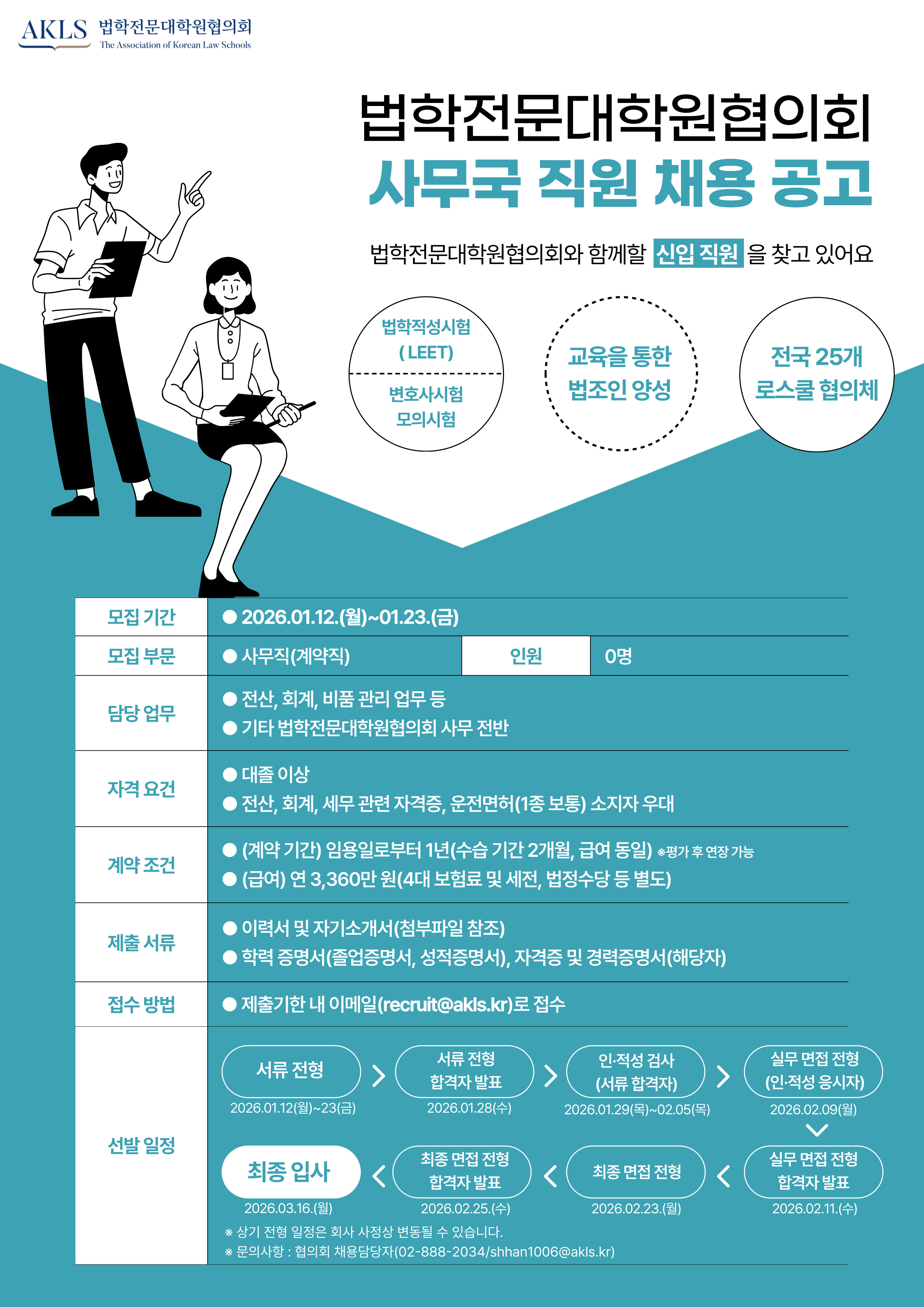 [취업-1396] 법전원협의회 사무국 계약직 직원 채용공고(~1/23 금)