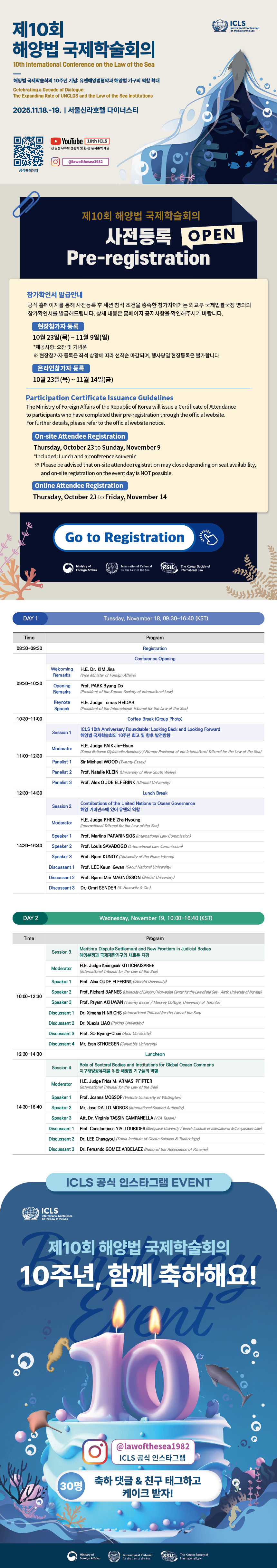 fnctId=bbs,fnctNo=3874 [대한국제법학회] 제10회 해양법 국제학술회의 개최 안내(11/18~19) date 2025.10.27 name 법학전문대학원 e-mail view 18 첨부파일 첨부파일이(가) 없습니다.