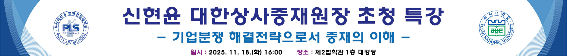fnctId=bbs,fnctNo=3874 [필독] 대한상사중재원장 초청 특강 안내(11/18 화 16:00) date 2025.11.17 name 법학전문대학원 e-mail view 129 16:30 시작 예정으로 변경되었습니다. 첨부파일 첨부파일이(가) 없습니다.